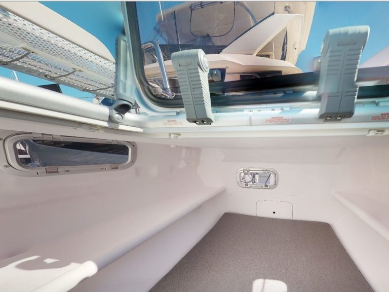 Eine geschlossene Toilette eine große Pantry, lange und breite Schlafkojen – also auch familien- oder buddy-freundlich fürs Cruisen..