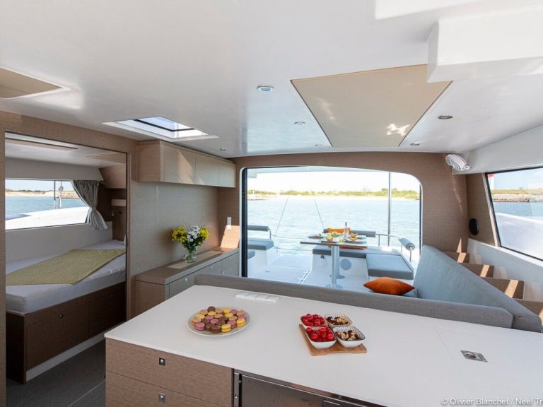 Die NEEL 43 ist ein Cruiser-Trimaran mit vielen Besonderheiten, die sie von klassischen Ein-Rumpf-Yachten oder Katamaranen unterscheiden. Das sind: