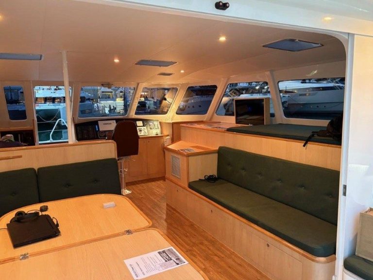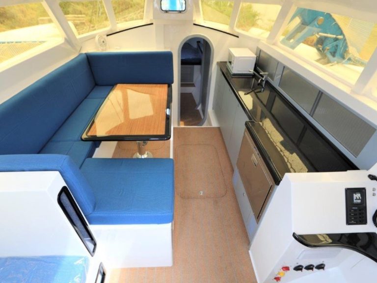 Der Tiefgang ist mit unter 1 m. Das ermöglicht Zugang zu flachen Küstengewässern und Lagunen. Die Yacht ist ausgelegt sowohl für privaten Gebrauch als auch für kommerzielle Nutzung. Komfort & Raumangebot Trotz der Performance-Auslegung bietet sie komfortable Innenräume. Der Salon bzw. das Steuerhaus sind so angelegt, dass man 360°-Panoramablick hat.